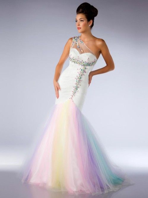 Colorful Rainbow Mermaid Prom Dresses Sexy Sheer One Shoulder Shiny Colorful Beaded Crystals Pageant From Dressbeauty Shop 121 01 Dhgate Com - I felt like putting her in my idea for her homeworld dress!