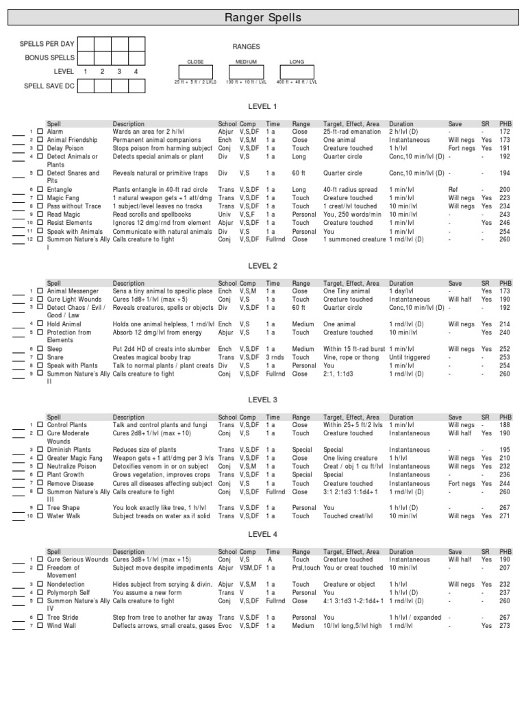 Ranger 5E Spells